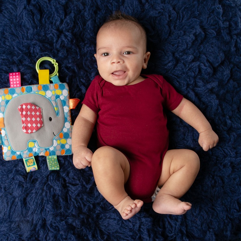 - How playful he’s getting and interacting with toys. He looks forward to tummy time and gets frustrated if we pick him up when he isn’t ready for it to be over.